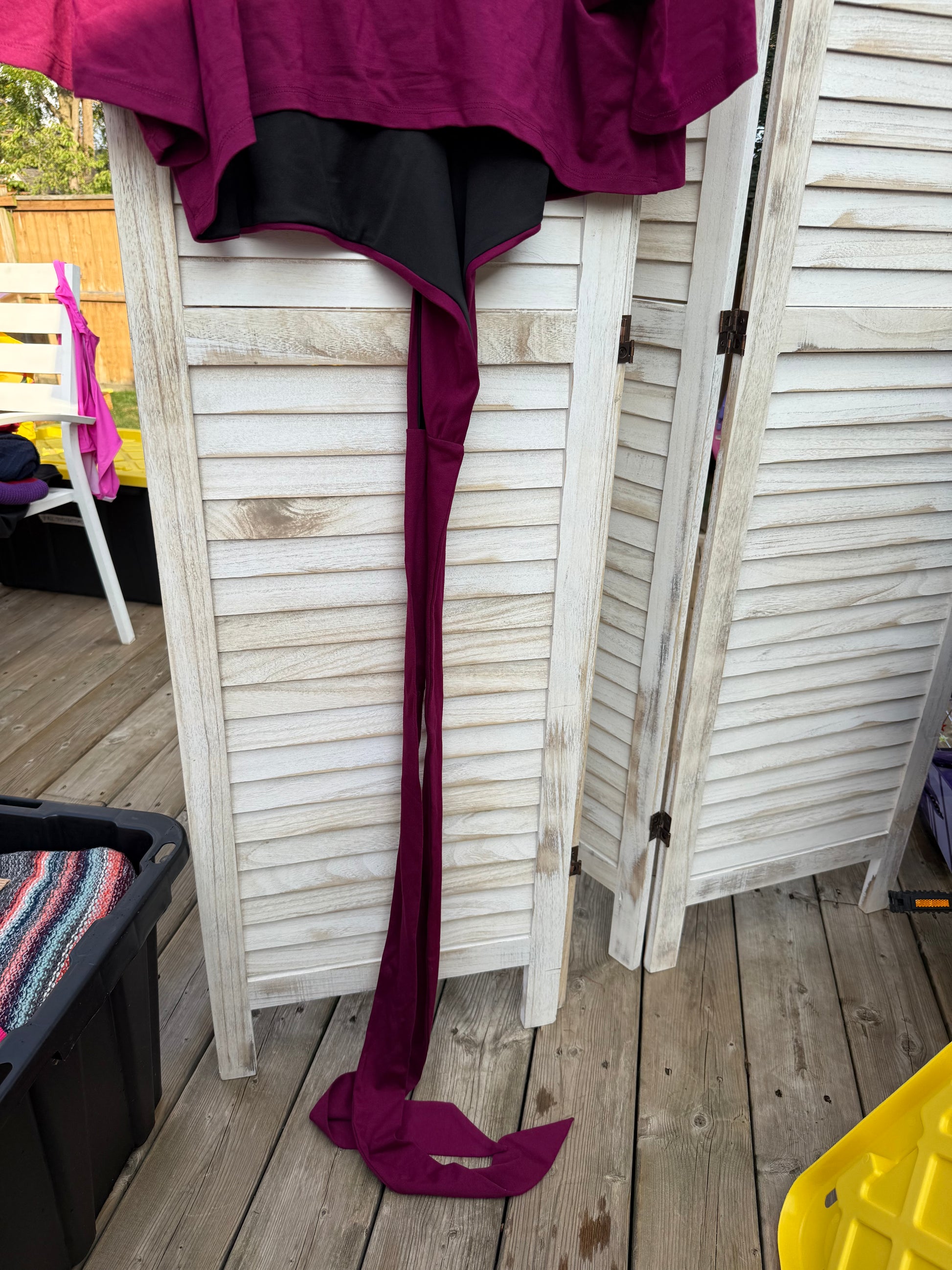 This top is cropped to waist length and comes with an extra long plus friendly wrap tie that can provide more coverage if that’s your preference. It’s perfect with a high waisted skirt. Skirt in the first photo is also available under a separate listing.