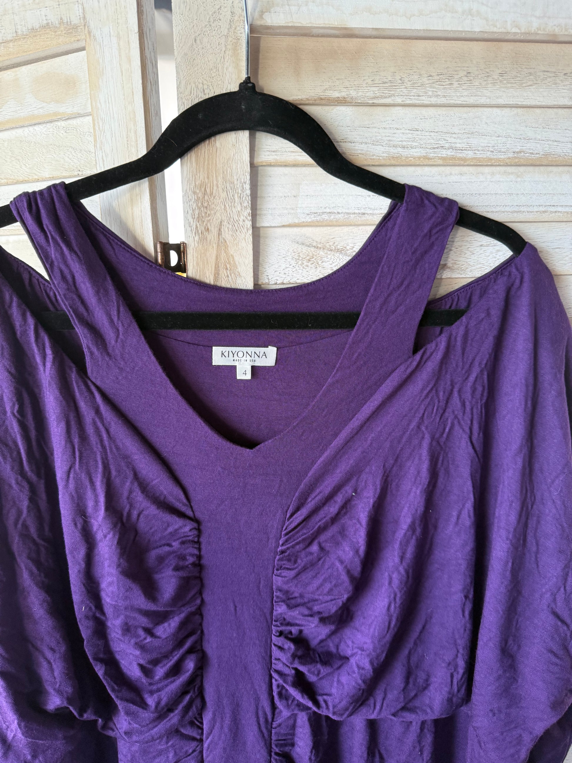 A classic Kiyonna style in their signature soft jersey fabric. This dress is a bodycon with ruching throughout the skirt to provide you with a great shape and detail. There is a cutout detail at the neckline while still being bra friendly and 3/4 length sleeves.