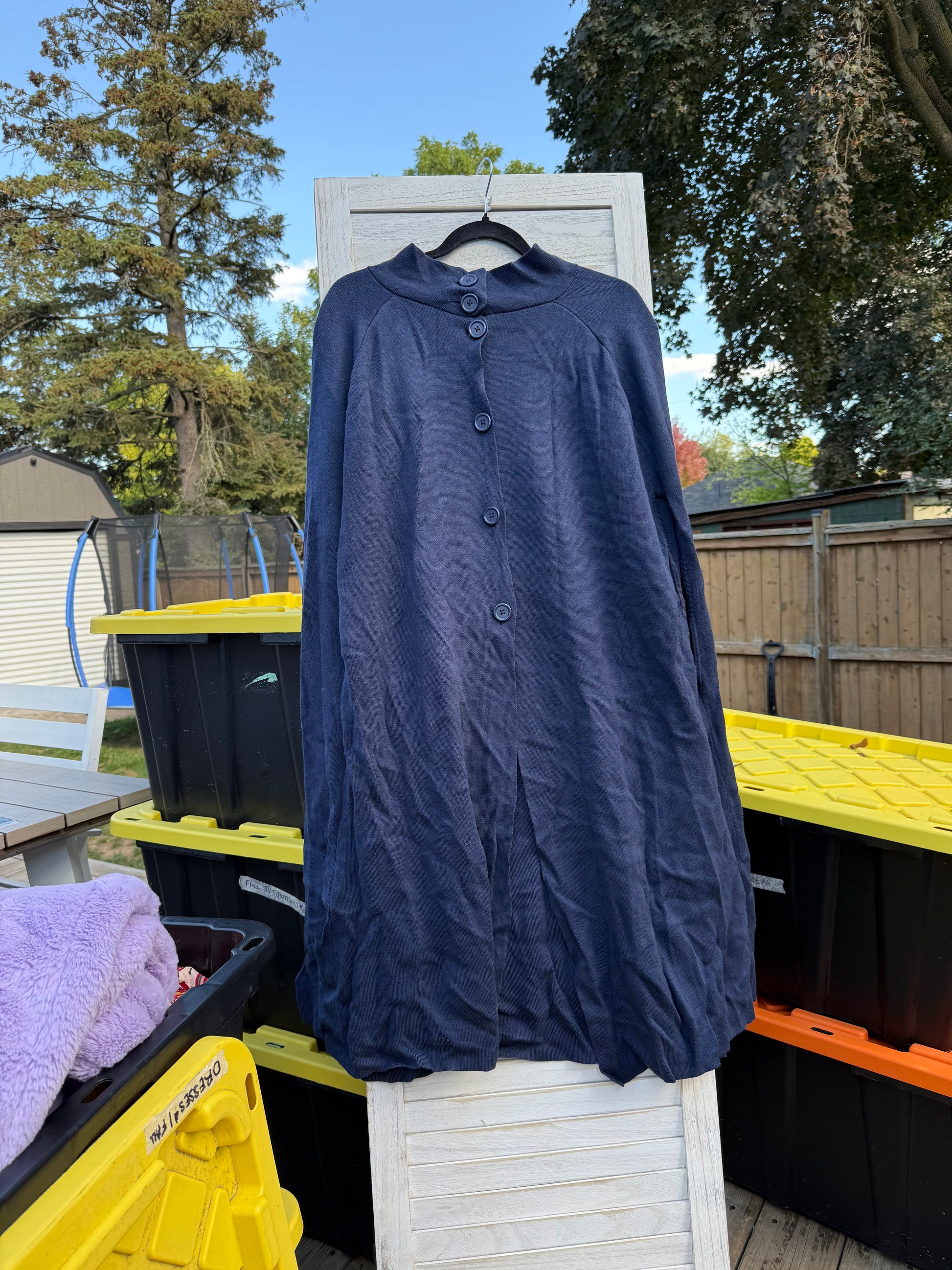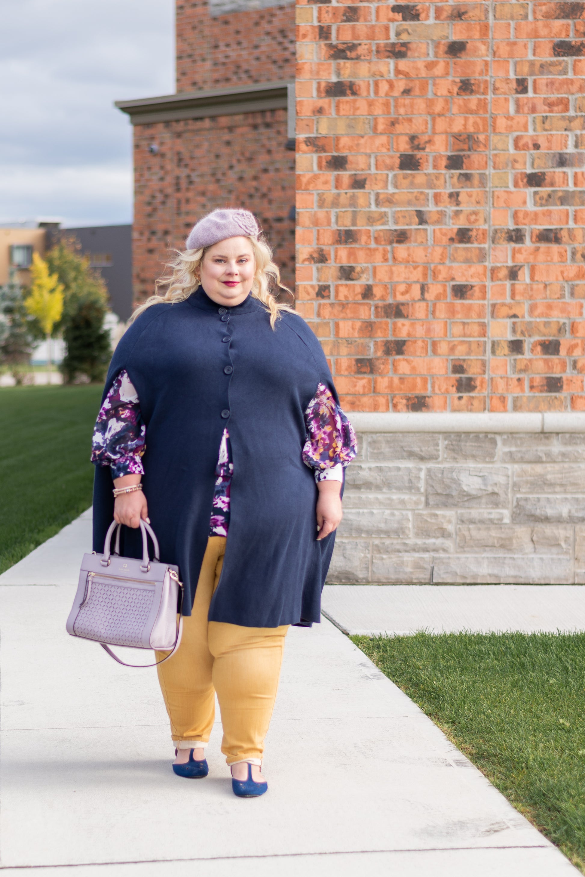 This baby blue sweater cape is from a Girl With Curves collection with Lane Bryant. It buttons all the way down the front and is a great layering piece.